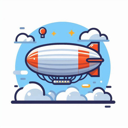 Airship in the sky with clouds. Cartoon vector illustration for your design