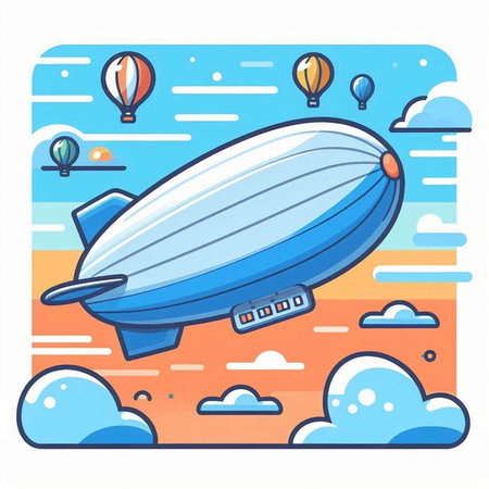Airship in the sky. Vector illustration of a cartoon style.