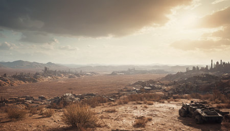 Dust storm engulfs desert road, creating a dramatic natural phenomenon