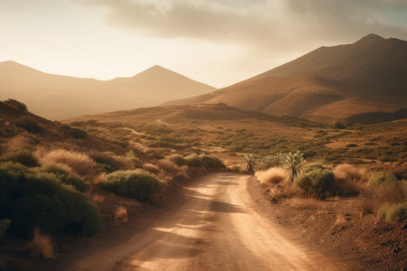 A dirt road through a desert. Generative AI.