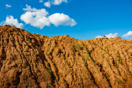 A pile of clay soil against a blue sky