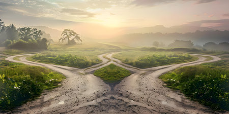 A Fork in the Road: Choosing Between Two Paths. Concept Decision Making, Life Choices, Choosing a Path, Crossroads, Options Available