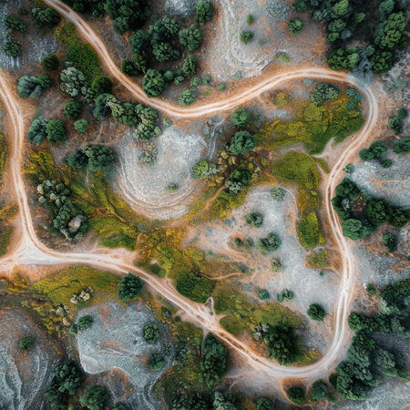 Winding dirt paths in the forest