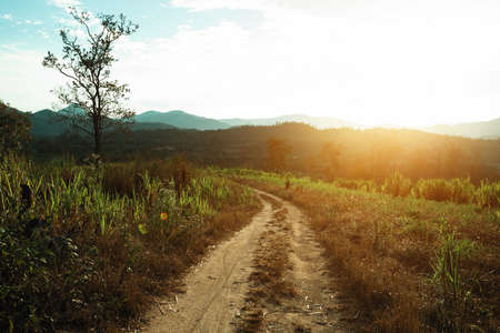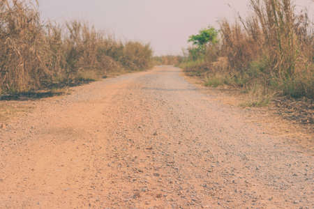 Dirt road in the countryside of Thailand, vintage tone and soft focus