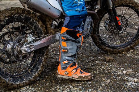 Motocross rider in action. Motocross sport. Close-up photo. Active extreme rest.