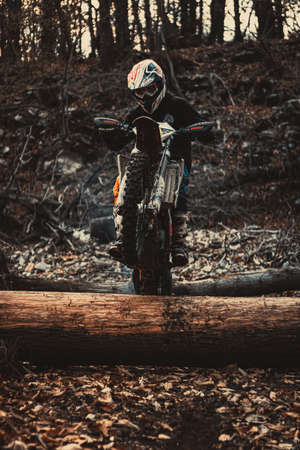 SOKO BANJA, SERBIA - OCTOBER 20, 2018: Unidentified driver at Hard Enduro Race in Soko Banja, Serbia. This moto offroad race took place at October 20-21, 2018.