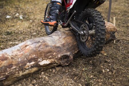 SOKO BANJA, SERBIA - OCTOBER 20, 2018: Unidentified driver at Hard Enduro Race in Soko Banja, Serbia. This moto offroad race took place at October 20-21, 2018.