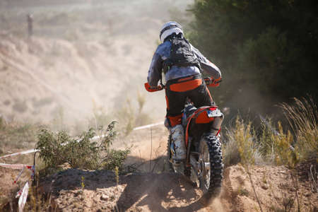Professional enduro bike rider on action. Motocross sport.