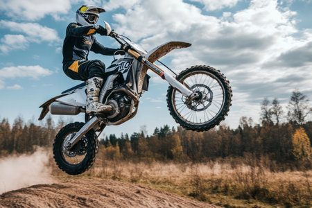 Adventurous motorcyclist jumping over an obstacle at an exhilarating motocross track