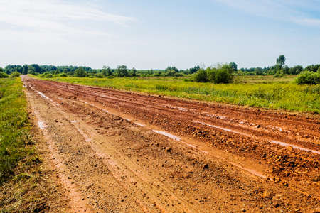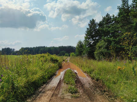 Dirt impassable road in the field a summer day