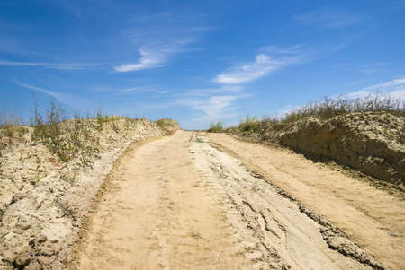 Yellow sandy road under a blue sky
