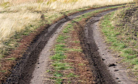 Mud blurred road, autumn field.