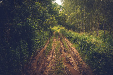 Muddy country roads in the forest