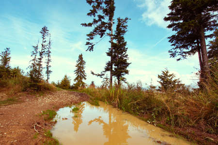 Dirt road in the forest after rain