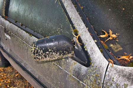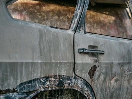 Old abandoned and rusty car exterior detail