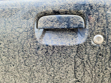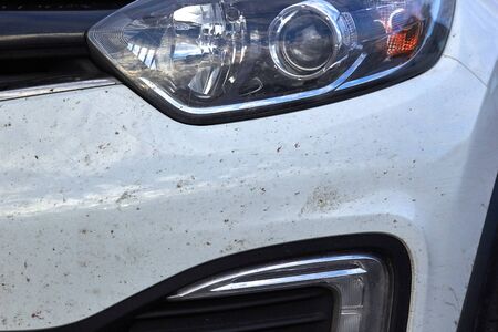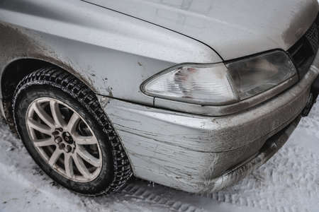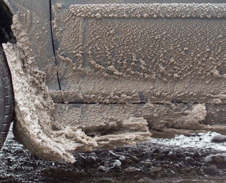 Dirt on the car in winter close-up in details