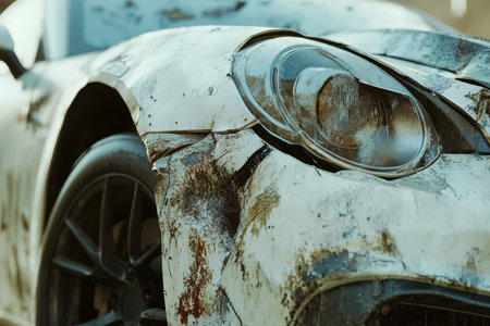 Car scratched with deep damage to the paint. Safety on the road concept.