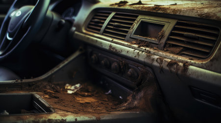 grime blurred dirty car interior