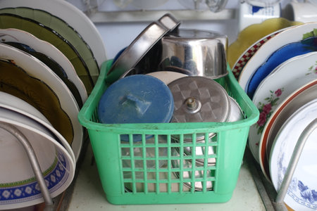 Dirty of dish and kitchenware waiting for wash.