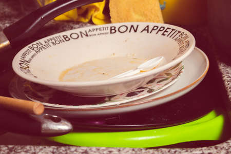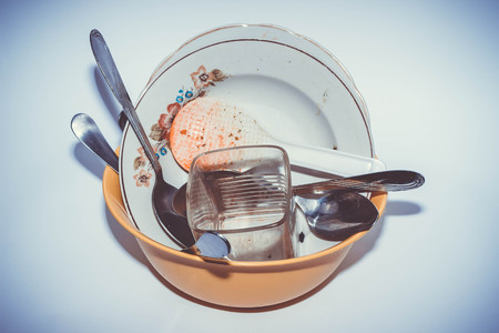 Empty dish after food on basin