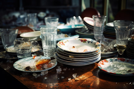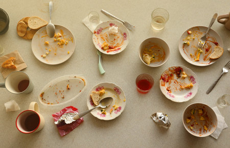 Dirty dishes and uneaten food on the table a photo representing the concept of leftovers