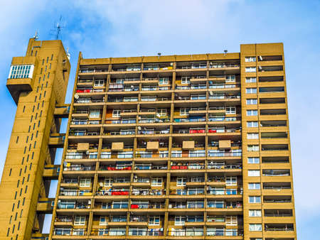 LONDON, ENGLAND, UK - MARCH 05, 2009: The Trellick Tower in North Kensington designed by Erno Goldfinger in 1964 is a Grade II listed masterpiece of new brutalist architecture (HDR)