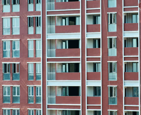 Windows and accessories of a new modern monolithic frame-block house under construction with windows, walls and balconies. Background, texture.