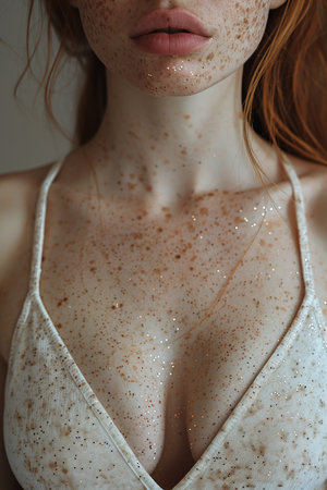 A woman with red spots on her face and neck, AI