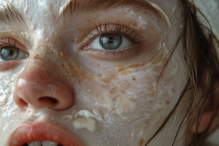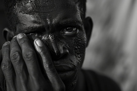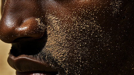 This close-up portrait captures a unique dusty texture on skin, highlighting intricate details and natural beauty with artistic lighting and composition.
