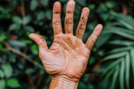 Close-up of a mechanic's hands, showing the dirt and grease accumulated from machinery maintenance. A testament to hard work and craftsmanship in the industrial field.