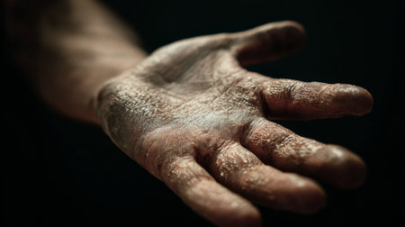 A striking close-up captures the texture and detail of a weathered human hand, showcasing the stories, emotions, and experiences written in every line and scar.