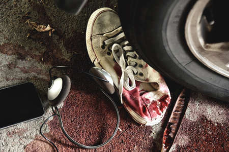 Accident on the road, Car crash, Blood body lying on the street hit by a car.
