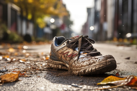 This poignant image of abandoned shoes on a street evokes themes of economic hardship and loneliness, capturing the essence of struggle and resilience in urban life.