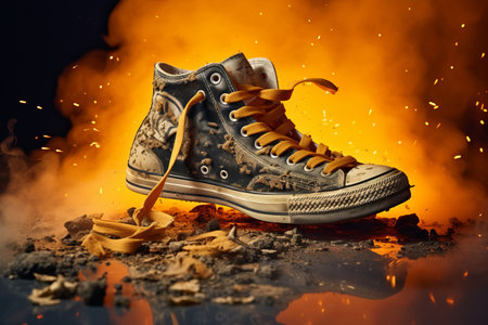the shoe features a vibrant red color, capturing the essence of destructive style. the photograph showcases the unique technique of schlieren photography, adding a touch of smilecore and corporate punk aesthetics. the splatter paintings-inspired design creates a visually striking image, while the media-savvy combination of white and red adds an eye-catching contrast. ai generated