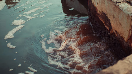 Visual representation of sewage contamination polluted water flowing from a pipe with impurities