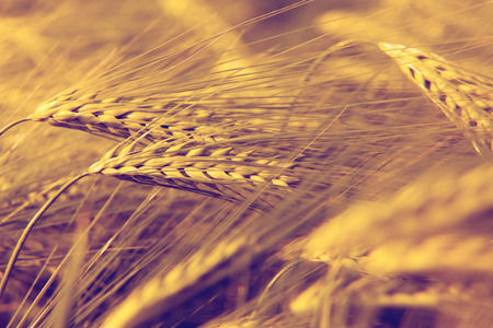 Cereal field with ears, rural landscape. Photo with vintage mood