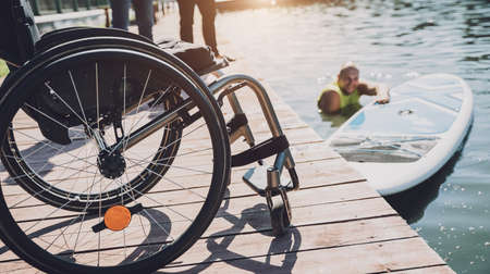 Person with a physical disability who uses wheelchair will be ride on sup board