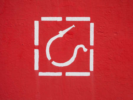 White fire hose symbol on a red background. Fire safety.