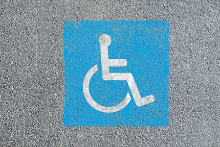 Closeup of painted blue symbol of invalid area parking in the street
