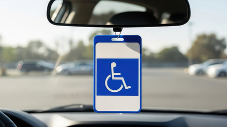Accessible parking sign on a car, emphasizing inclusivity and facilities for disabled users.