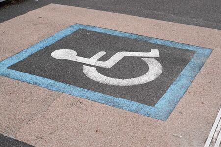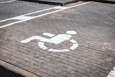 Pictogram painted on the road - indicates a parking space for the disabled.