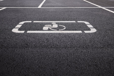 Close-up of road marking on asphalt: Parking spot for disabled people
