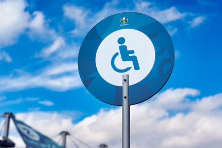 Place sign for disabled people at the Zenith Euro 2020 stadium in St. Petersburg
