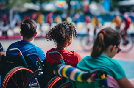 Spectators in wheelchairs watching event