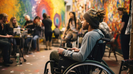 Community Art: Wheelchair Artist Fully Engaged in Creative Expression