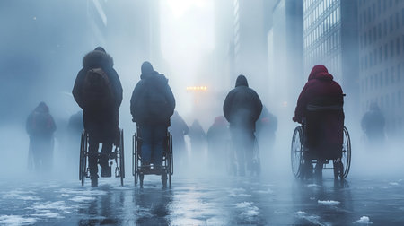 Urban Mobility: Wheelchair User Crossing Busy Road