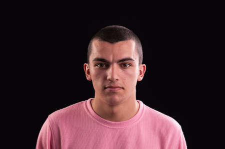 portrait of a young man posing fashion pink shirt modern style pink background unaltered