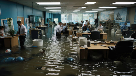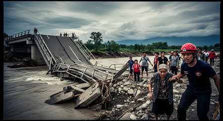 rescue blue tsunami illustration survivors aftermath, destruction chaos, determination water rescue blue tsunami