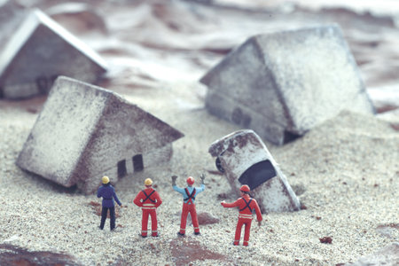 Debris clearance after the fall of the house, the consequences of the earthquake in the place, the accident and the consequences, generative AI.