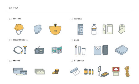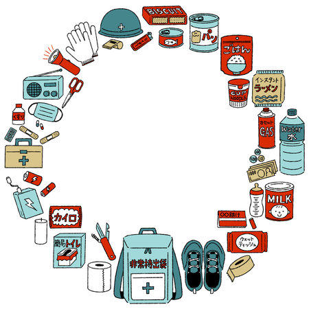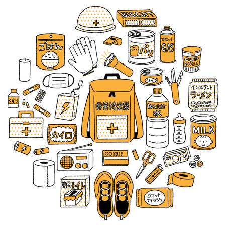 set of illustrations of cute hand-drawn disaster prevention goods